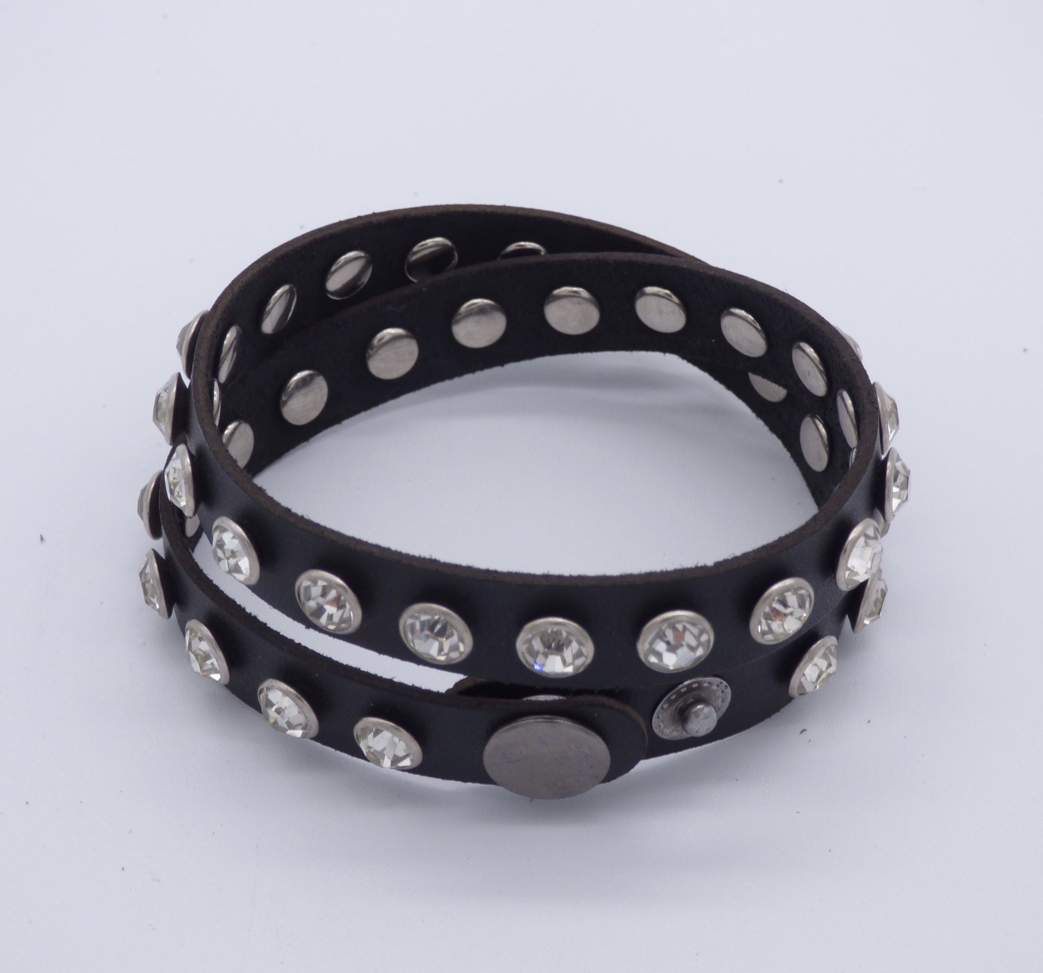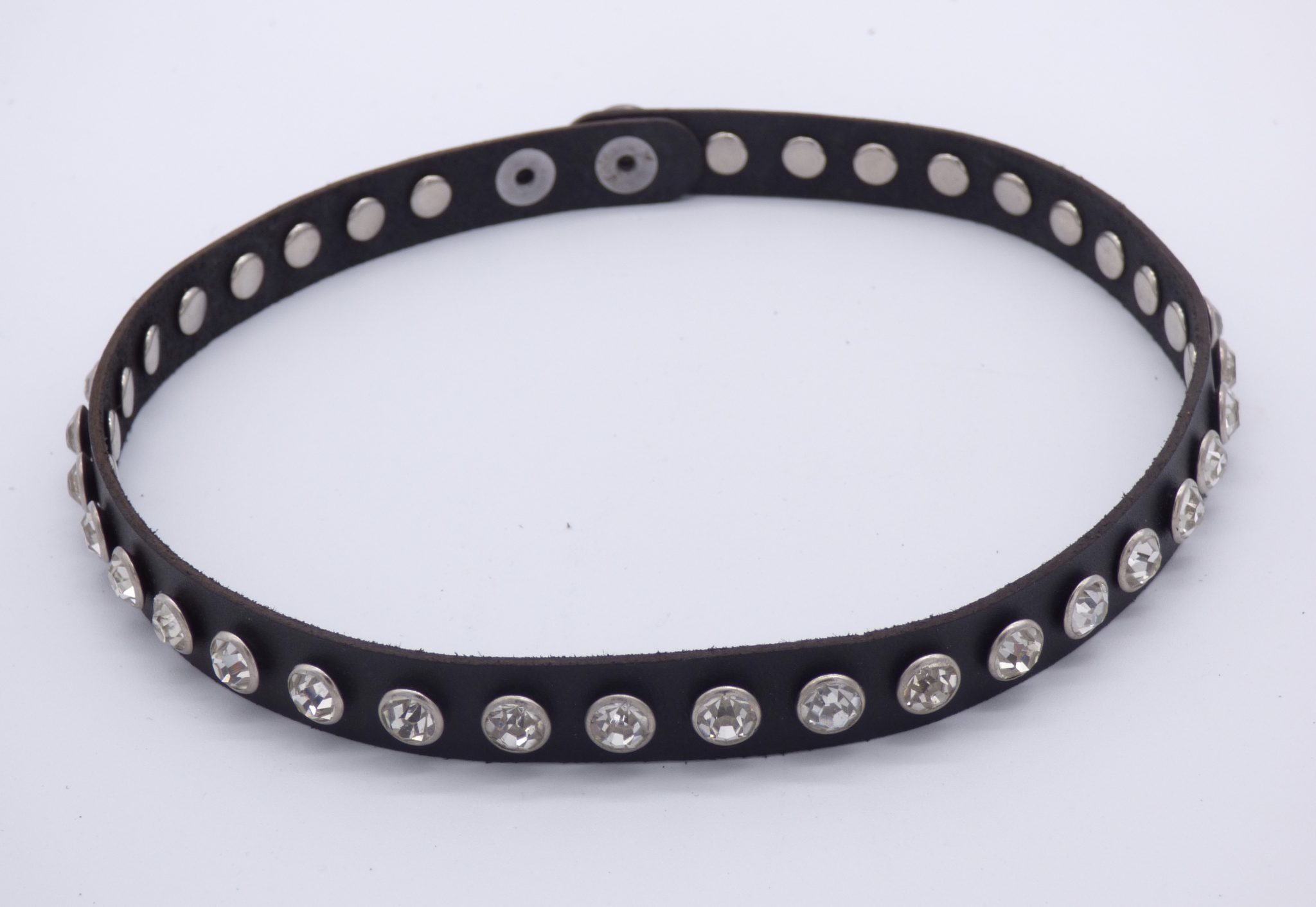Genuine Leather choker with Crystal Studs detail can be worn in two ways. Fits a neck of 38 – 40cm and is 1cm wide. Wrap around your wrist twice for a beautiful bracelet. It’s a beautiful accessory that goes with biker or evening wear.