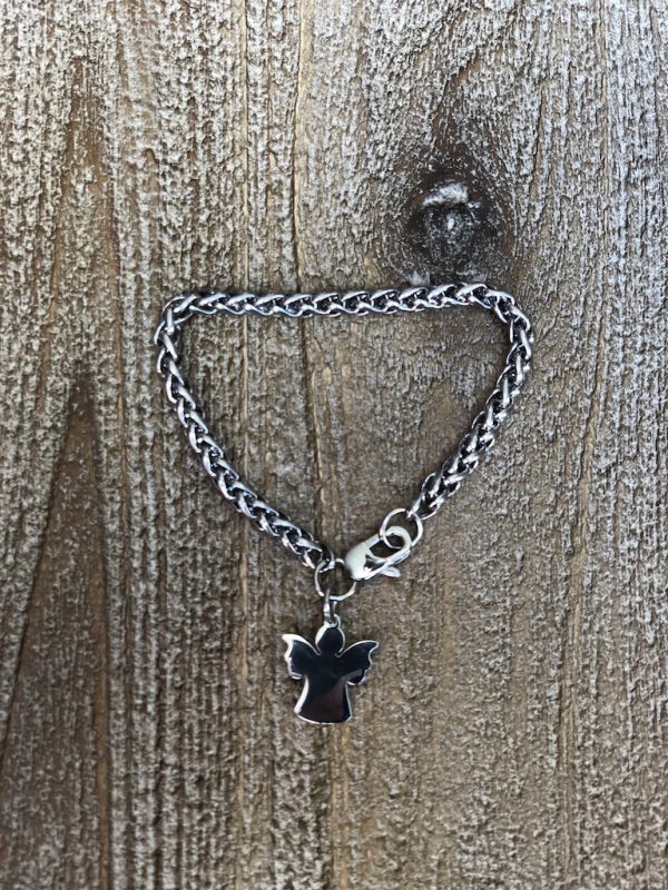R250.00Stainless Steel Flat Chain with Angel charm bracelet. Length of 19cm.