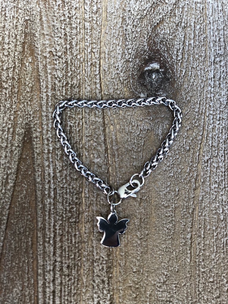 Stainless Steel Round Chain with Angel Charm Bracelet. Length of 19cm.