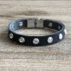 Genuine South African Bovine Leather with Bullet Studs, 4cm wide and fits writs of 17,5 – 19,5cm. Hand Made and Proudly South African.