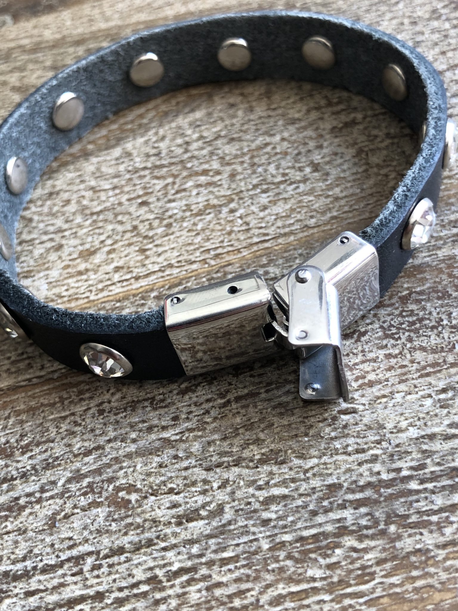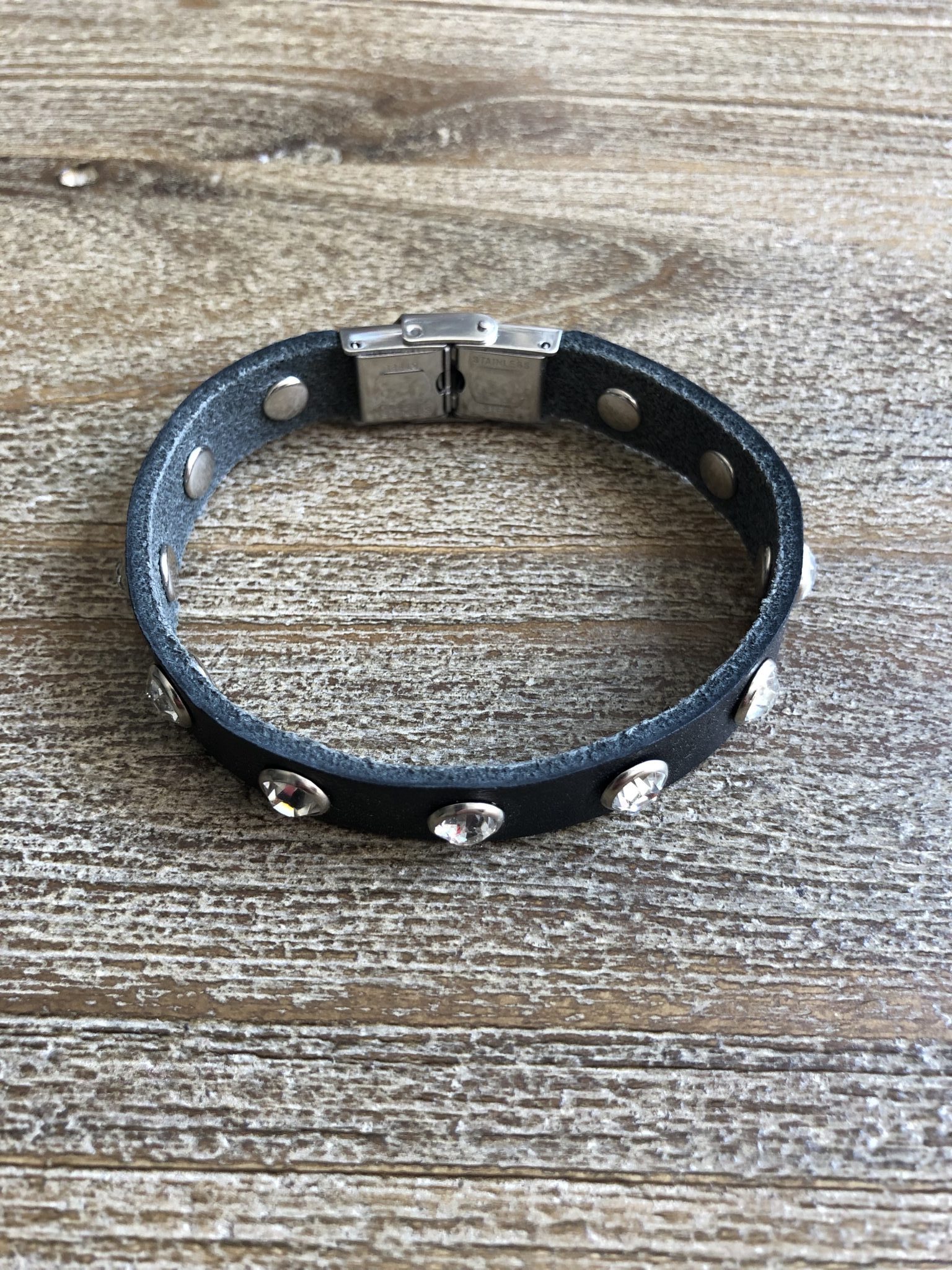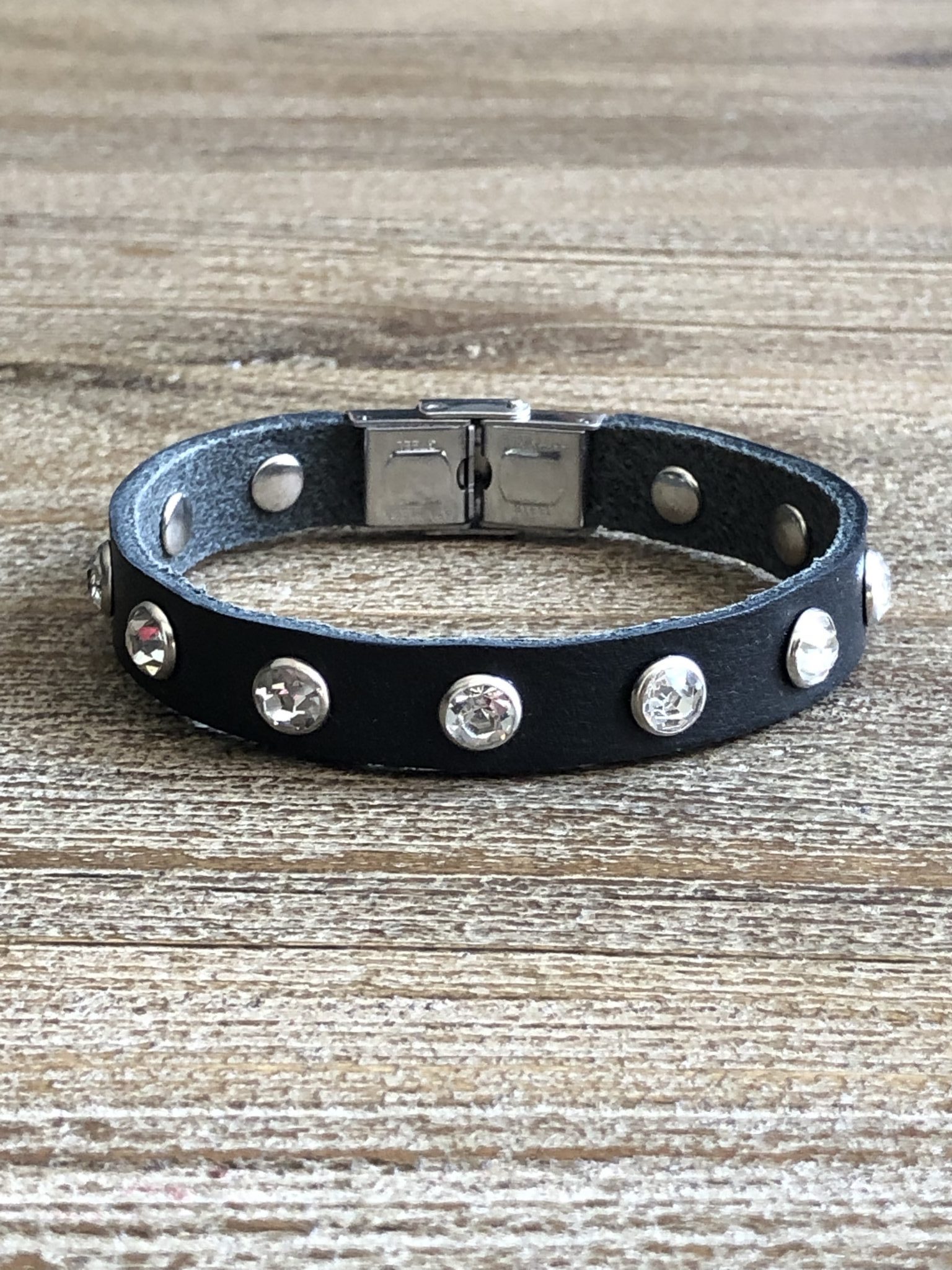 Genuine Leather Strap with Stainless Steel Clasp with Crystal Rivets. Lenght 19.5cm Width 1cm