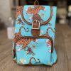 This beautiful backpack is made from waterproof canvas and lining, with genuine leather straps and base. The backpack is 26cm x 22cm x 12.5cm. The perfect accessory to compliment your look.