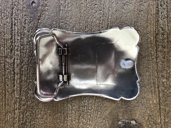This Antique Silver Roller Buckle fits a belt that is 38mm wide, the buckle is 50mm long and 55mm wide.