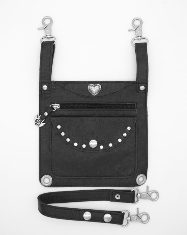 Made from Genuine Bovine full Grain South African leather. This biker bag has an adjustable strap that fits around your leg and the snap hooks clips to your belt loops. The bag is 36cm long and 20cm wide. Ideal for your credit of debit card at toll gates and your cell phone fits easily. To customise your bag, choose a concho at the accessories menu and studs of your choice.